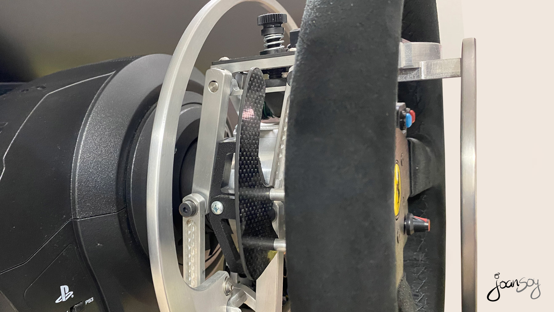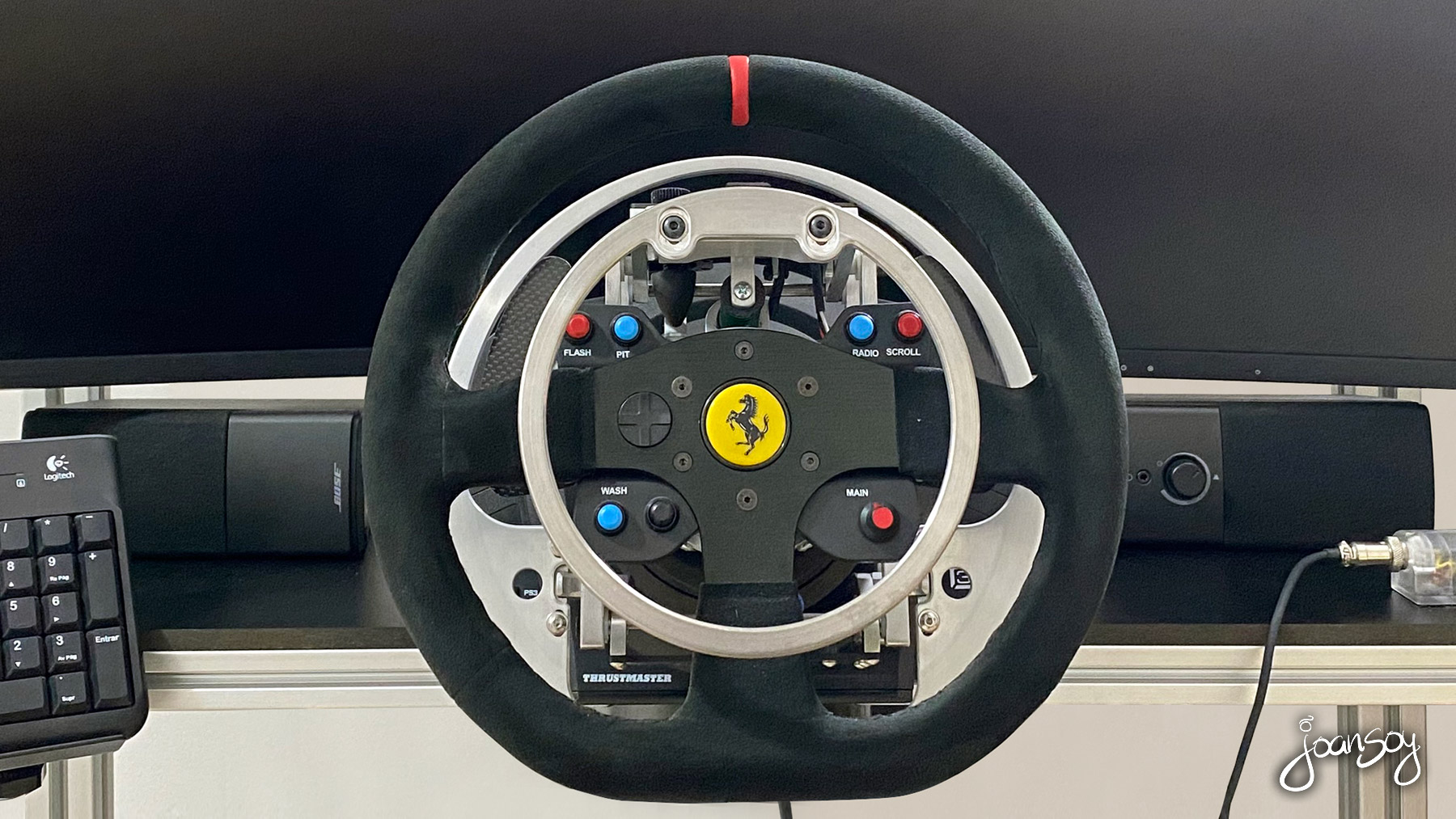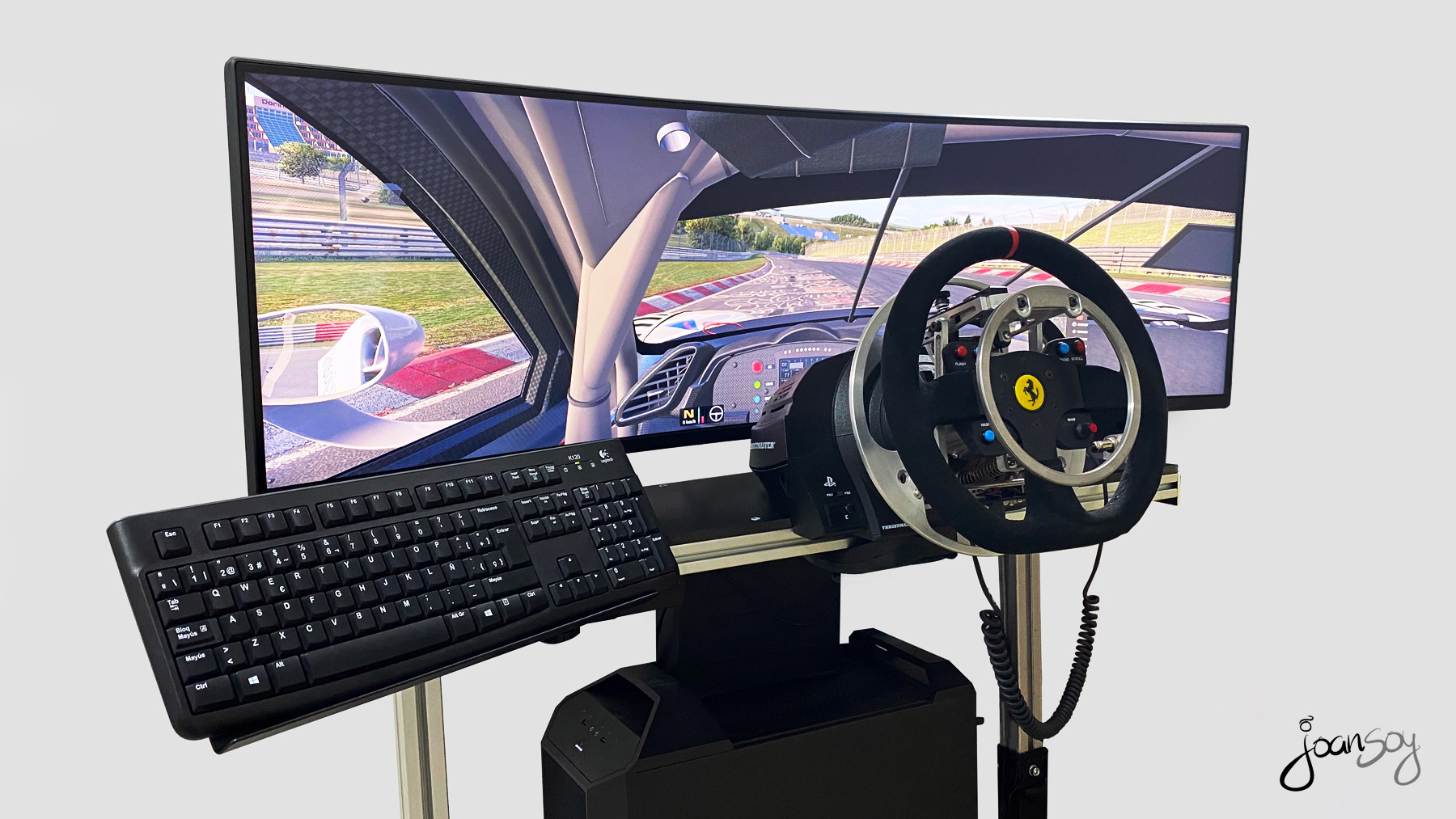 Gracias a la fabulosa adaptación del volante de Glenn Sidman www.simability.com y un soporte especial hecho a medida con la integración de la pantalla y el volante en la misma estructura www.zalem.es me hacen volver a disfrutar de lo lindo con el mundo del Simracing!!! 😀